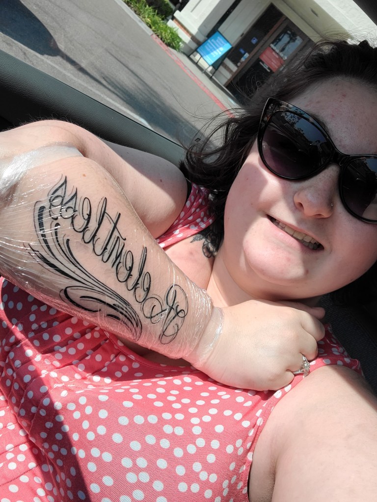 Next thing I know, I’m in this tattoo shop and this artist is drawing up designs and the first thing he drew was GORGEOUS. I said. Fuck it, let’s do it.